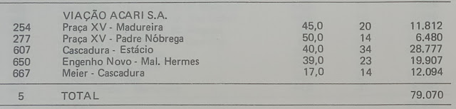 Em 1979, a Acari contava com 123 ônibus, 600 funcionários e garagem na Estrada Velha da Pavuna.