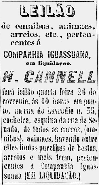 Em 8 de junho de 1855, as passagens da linha de Itaguahy passaram a ser vendidas diretamente pelo recebedor do omnibus.